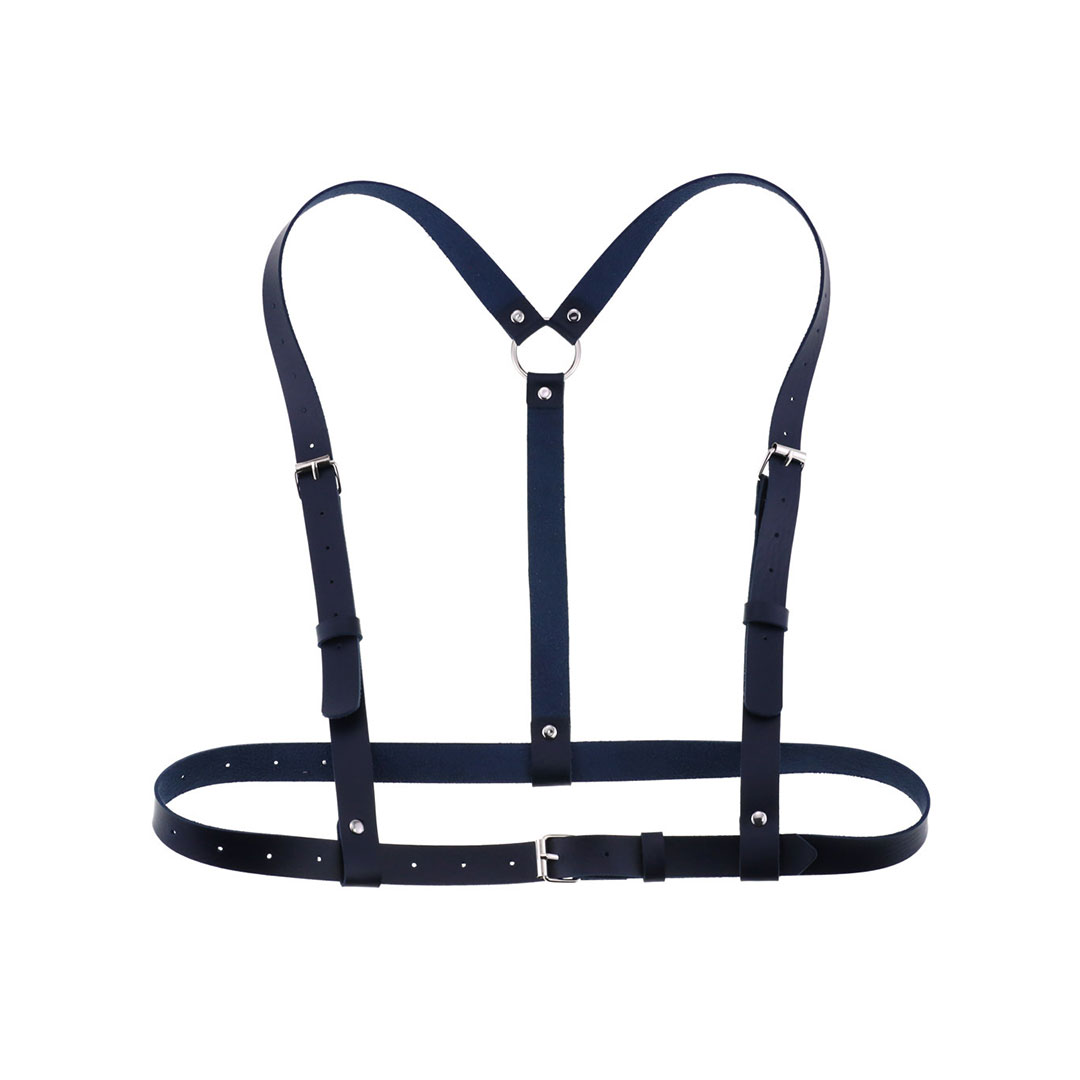 Genuine leather chest strap. A distinctive feature of this model is the single underbust strap. All straps are adjustable in girth and height for a perfect fit on the body. Belt width 2cm . Color: black